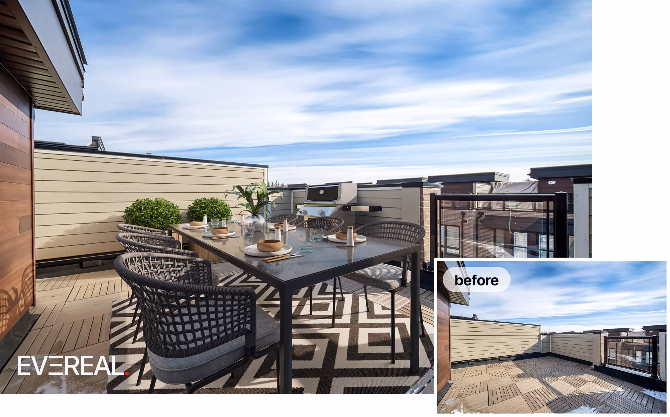 Since the picture is digitally generated, certain details in the final image may not perfectly reflect the actual property. We recommend reviewing the result carefully before using it in your listing or marketing materials. The decision to publish the image is entirely at your discretion.