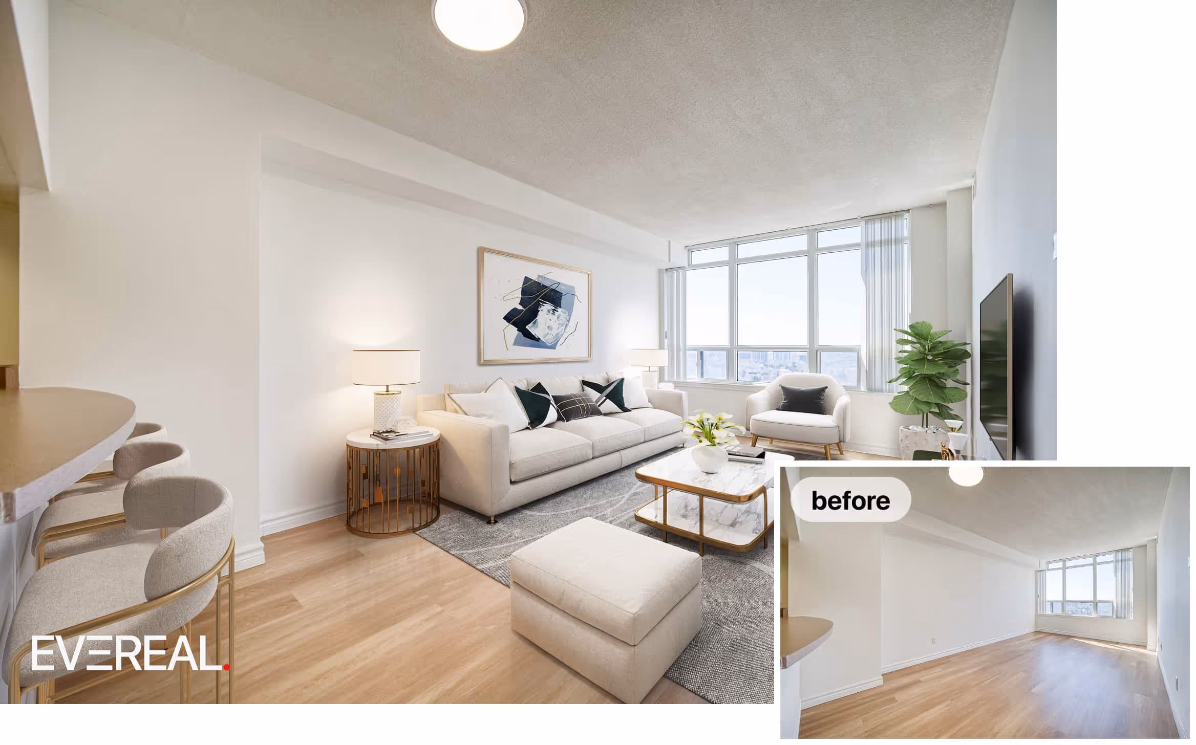 Virtual staging is a powerful and cost-effective way to showcase vacant properties. Using 3D furniture and décor, we digitally transform empty spaces into fully furnished, ultra-realistic photos that help potential buyers visualize the home’s full potential.